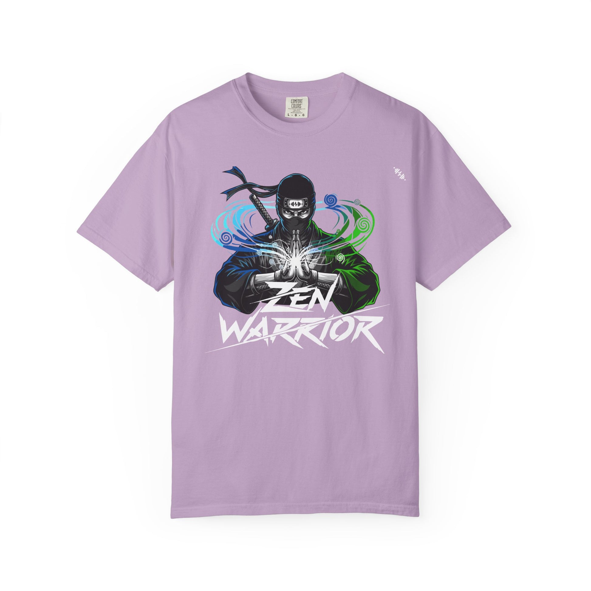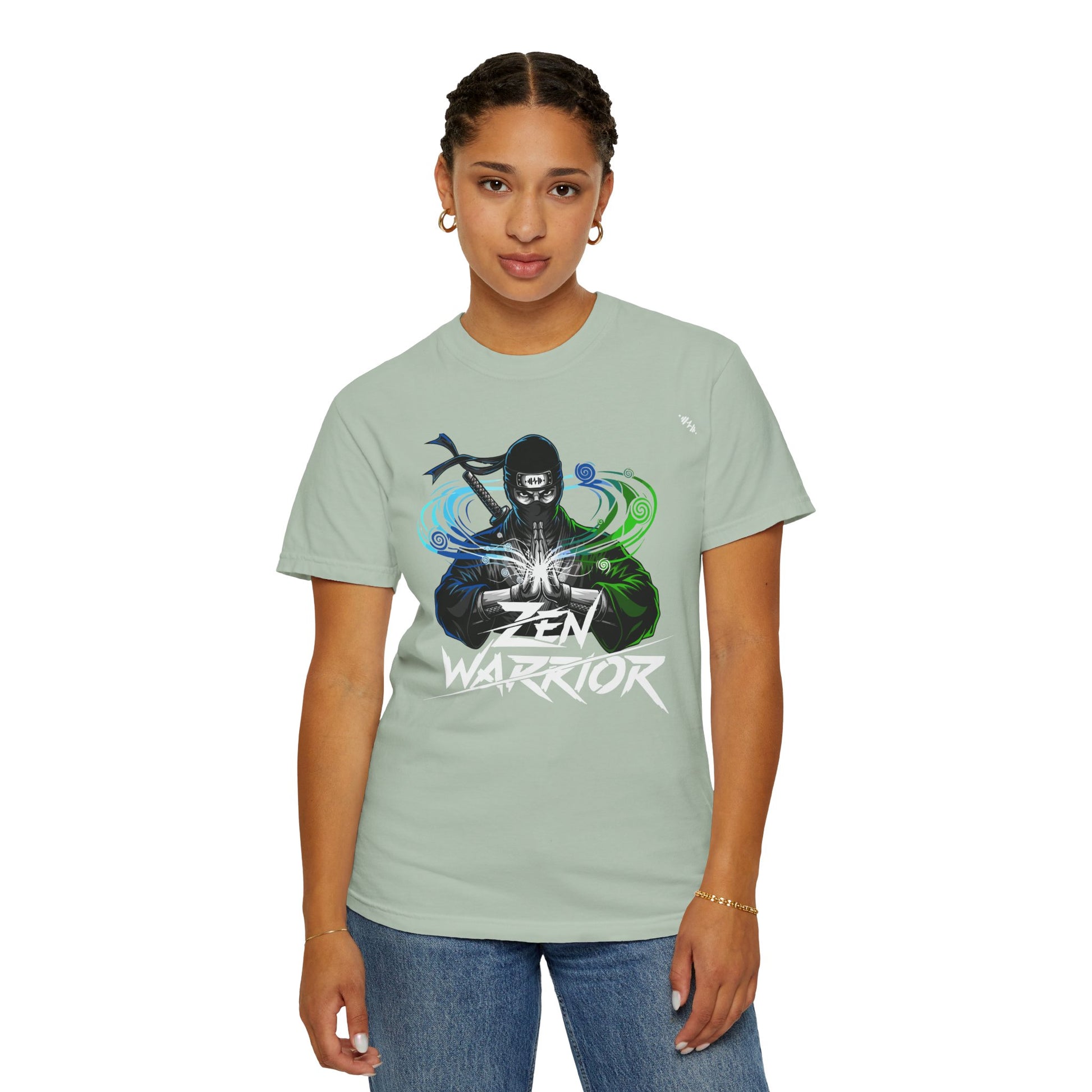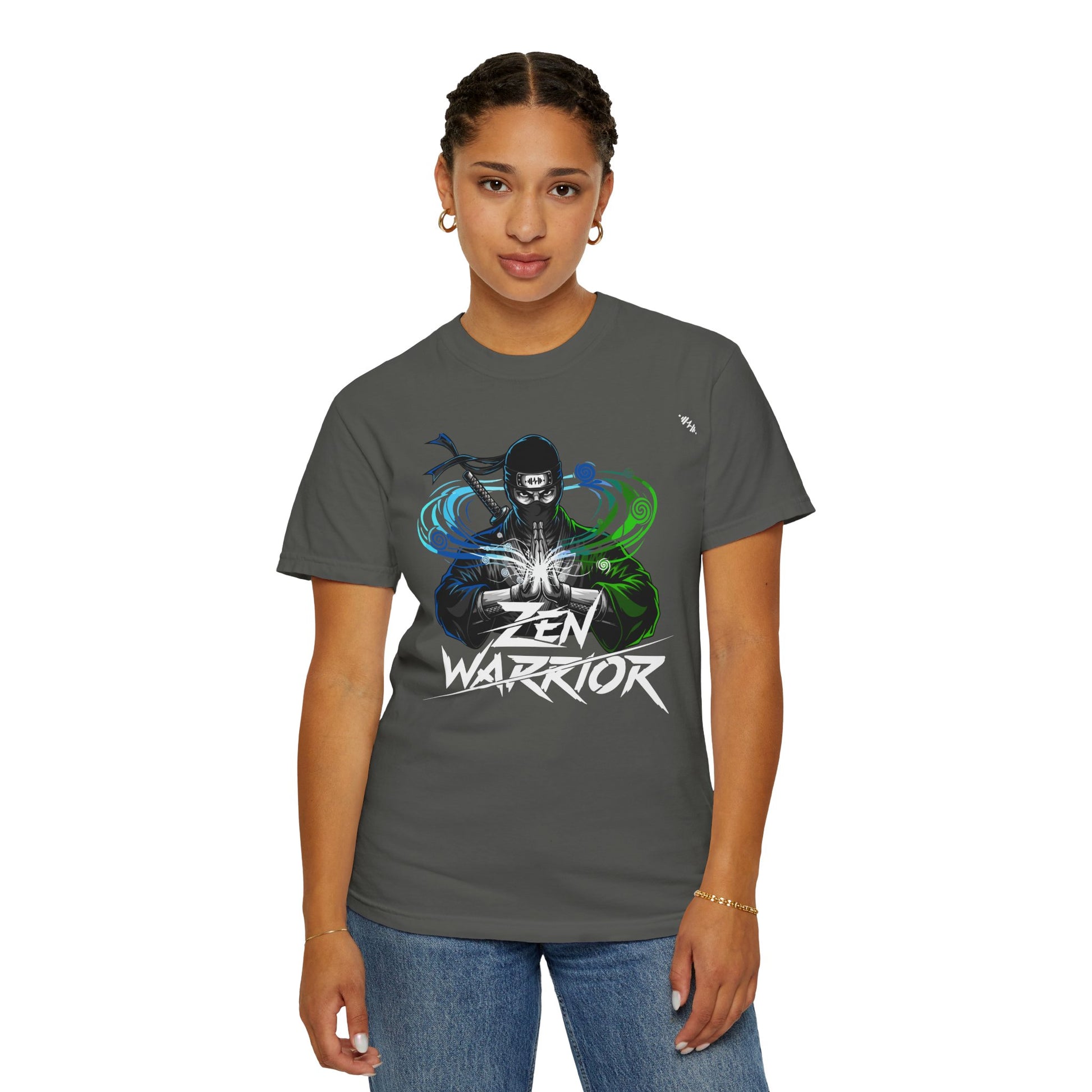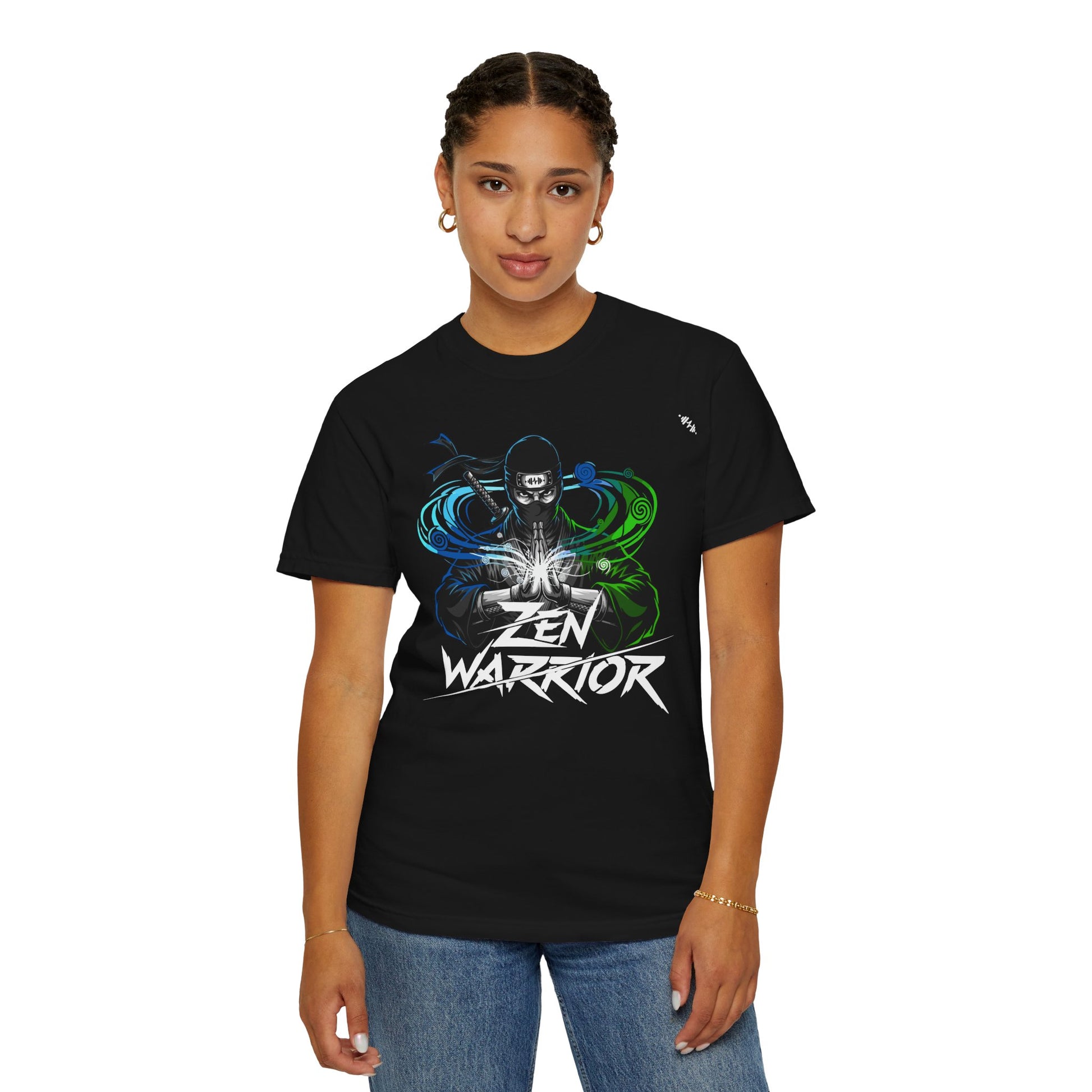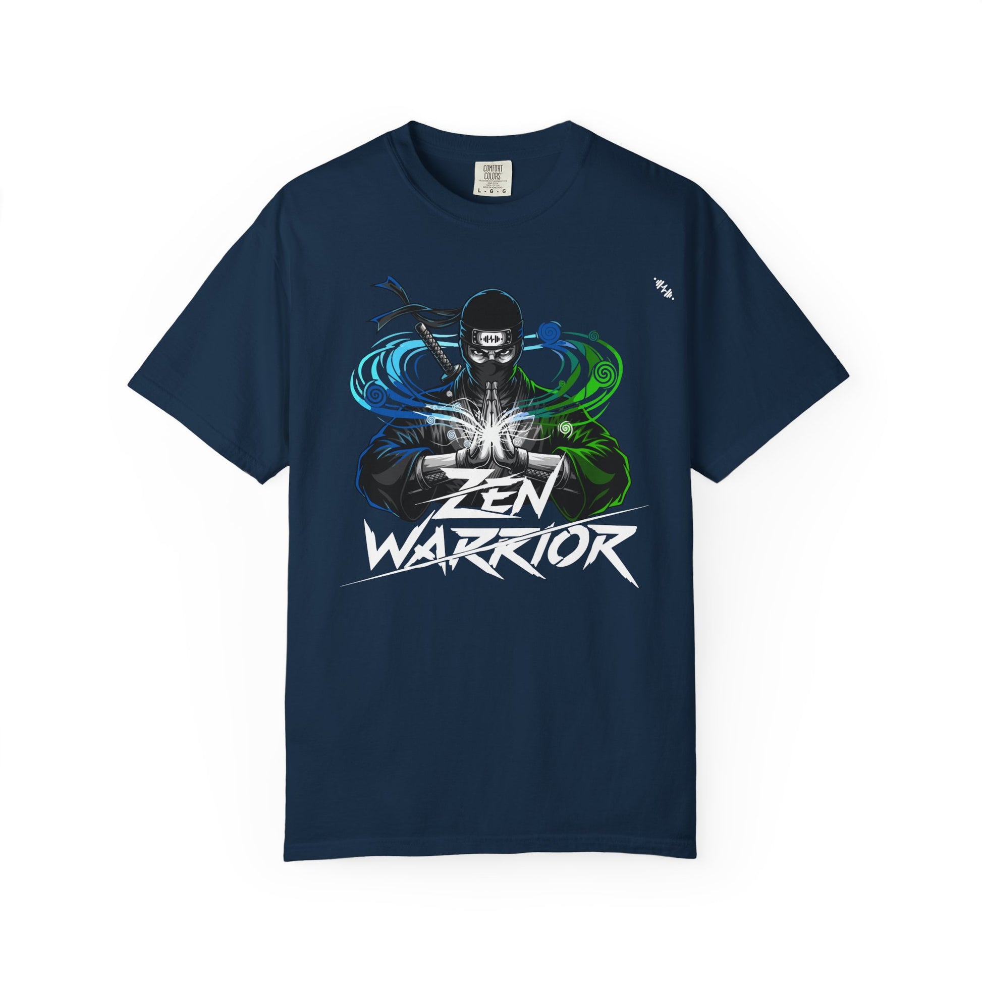 Bold, focused, and powerful. This tee features a striking graphic of a ninja in a meditative stance, surrounded by dynamic energy. The design embodies the spirit of a "Zen Warrior." A Training Tonic QR code is on the back.