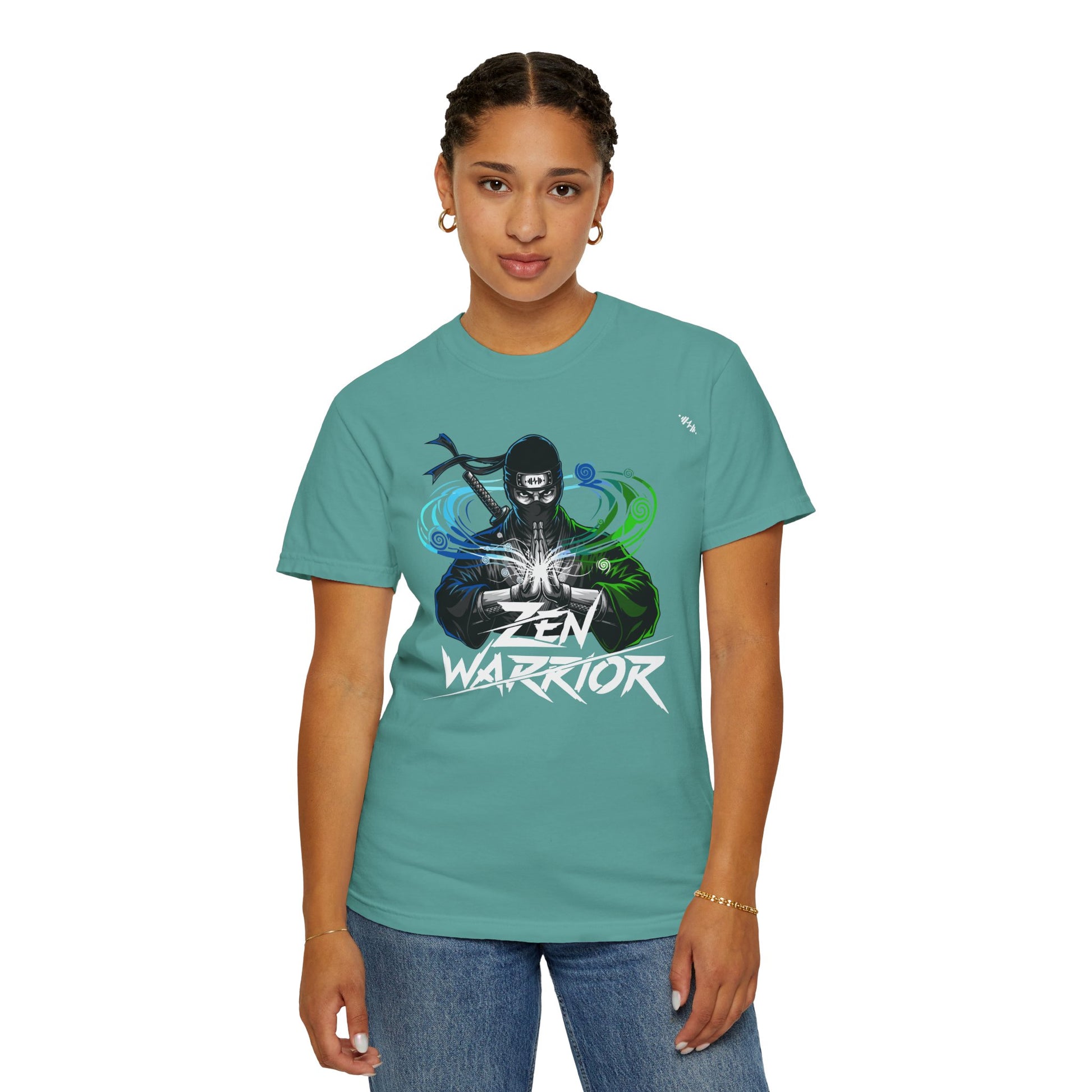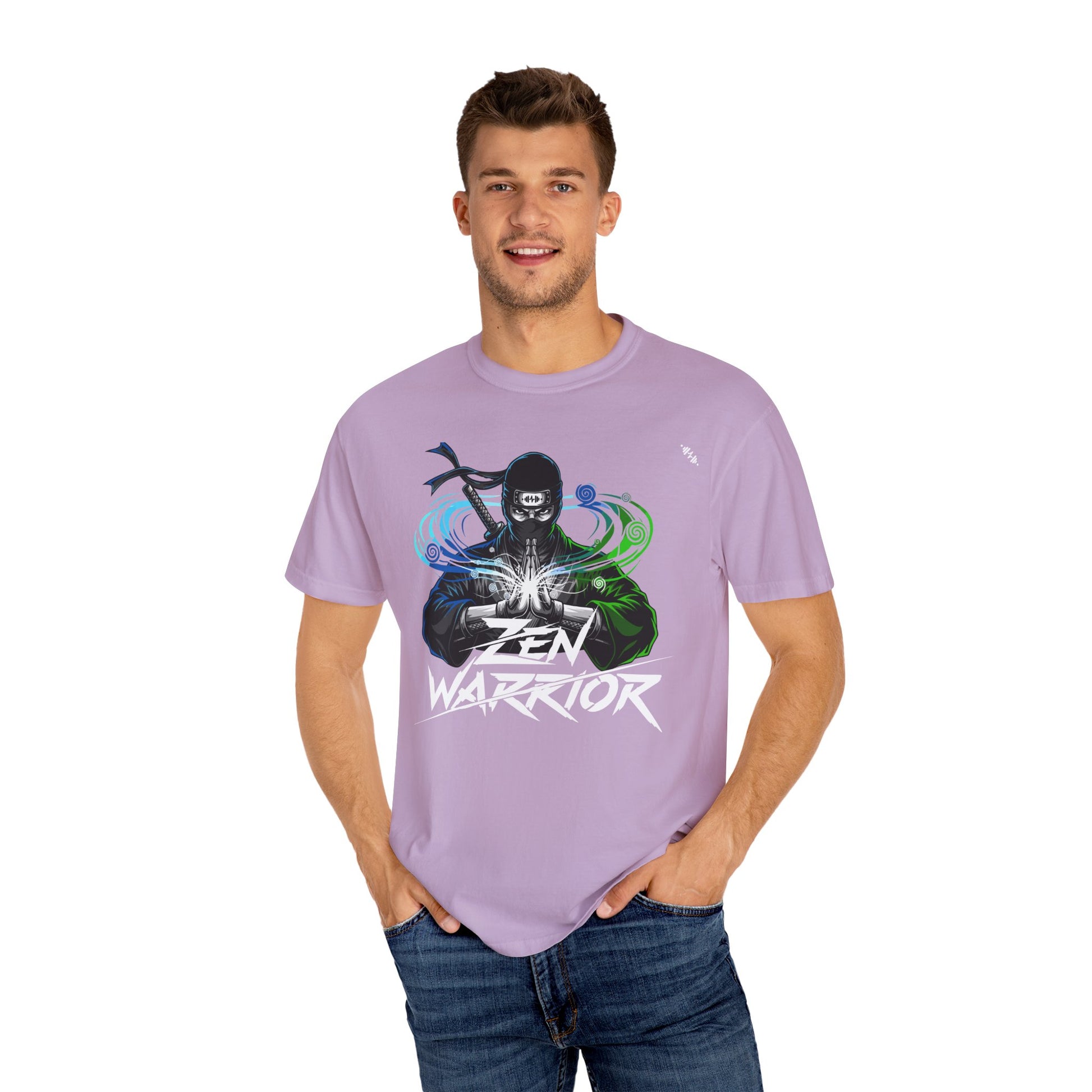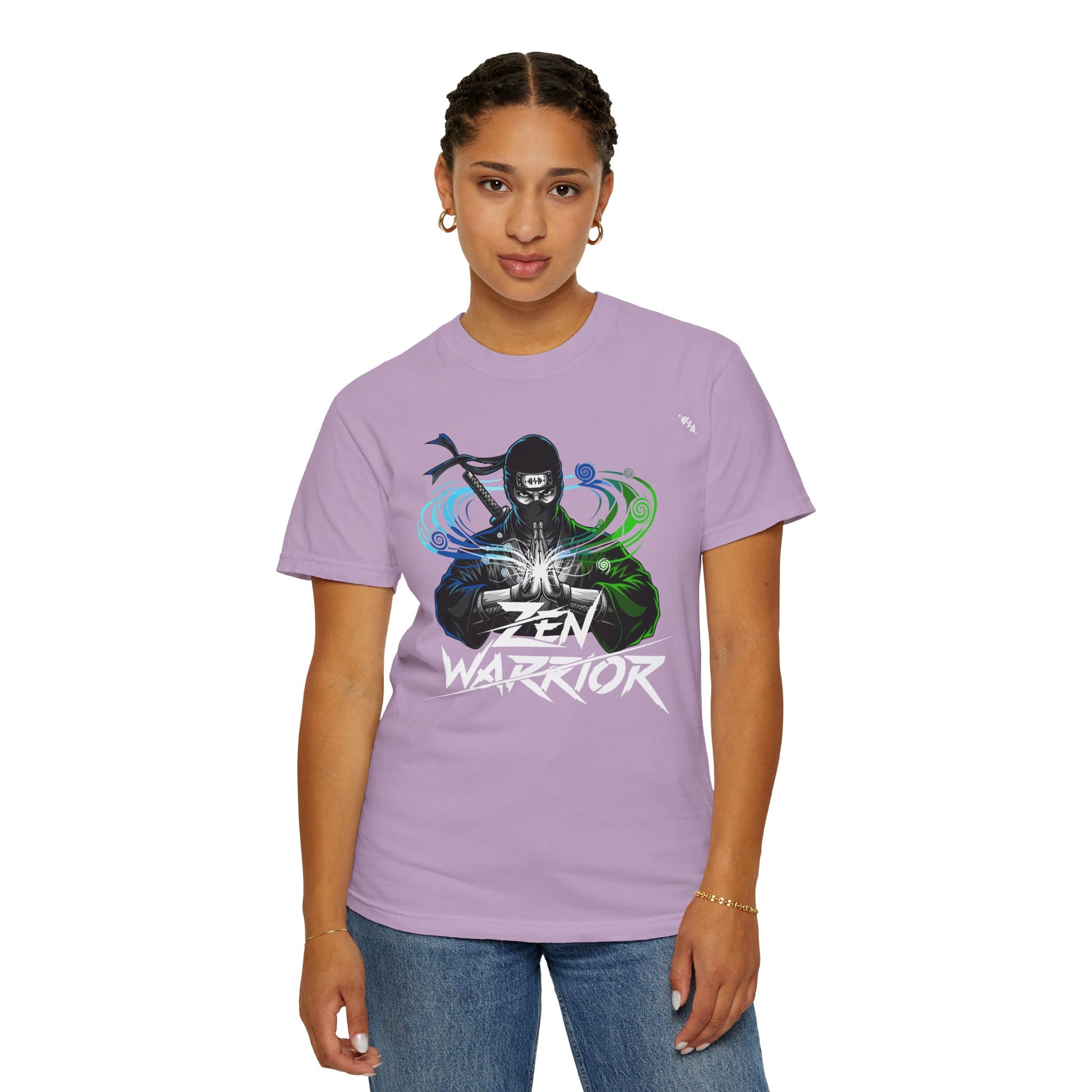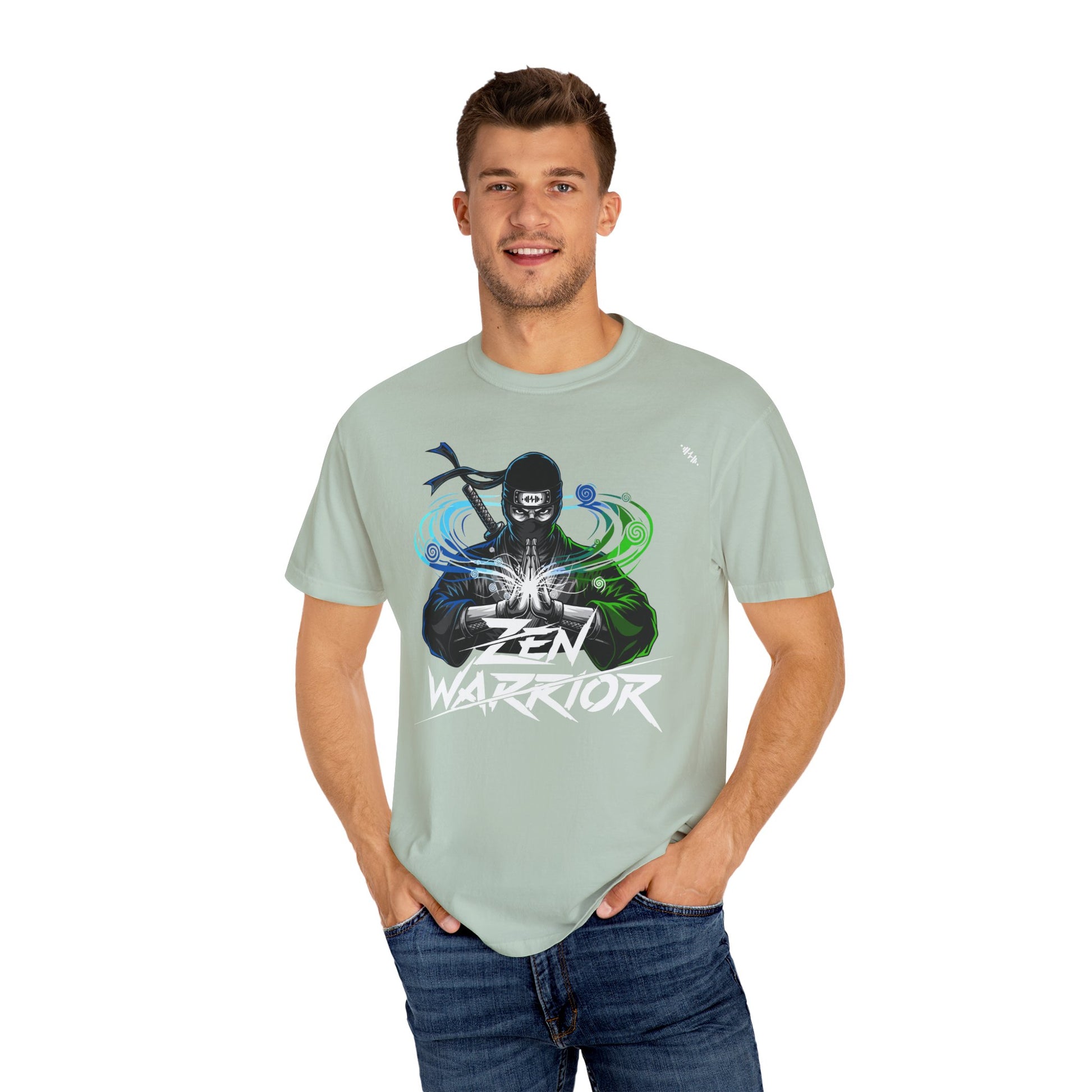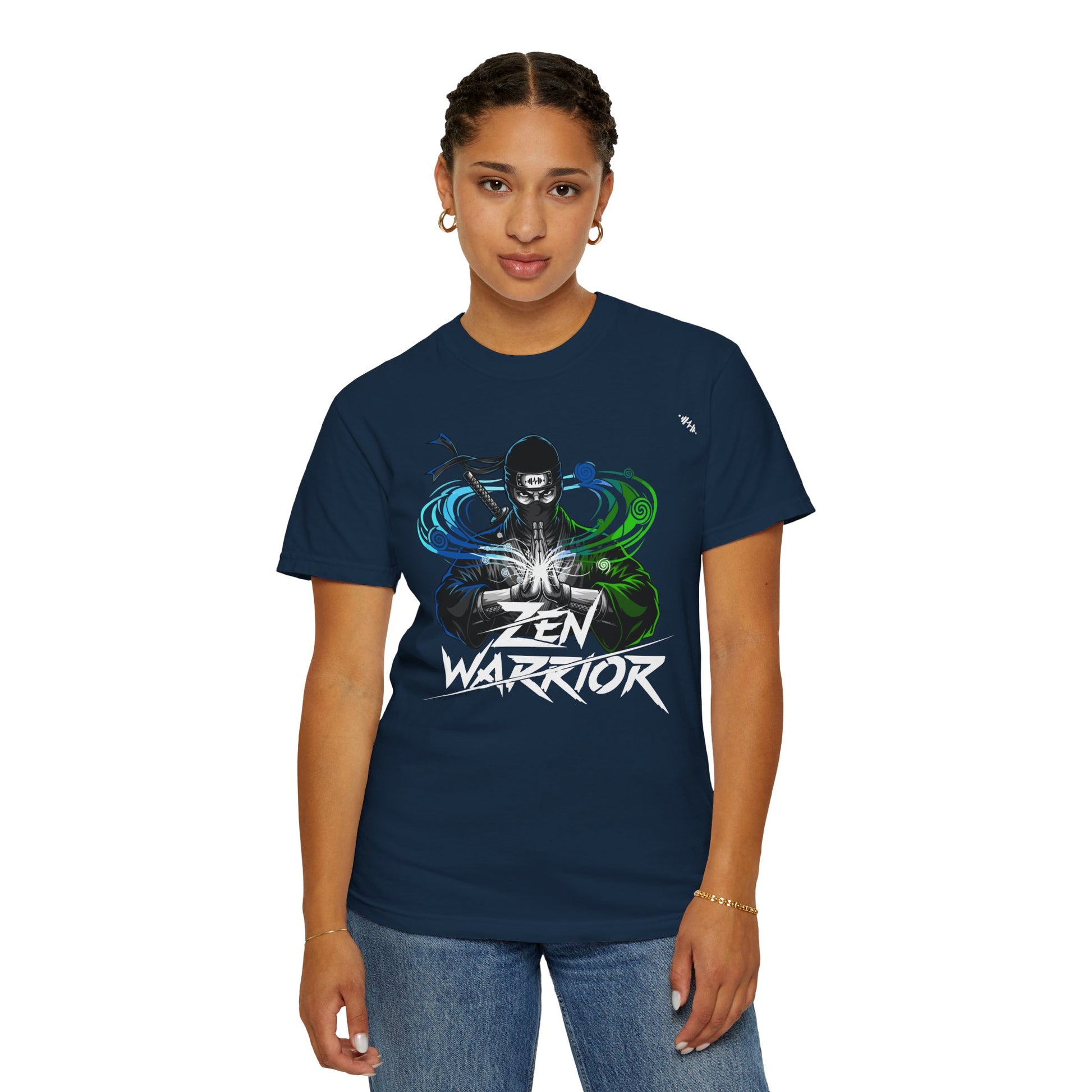 Bold, focused, and powerful. This tee features a striking graphic of a ninja in a meditative stance, surrounded by dynamic energy. The design embodies the spirit of a "Zen Warrior." A Training Tonic QR code is on the back.
